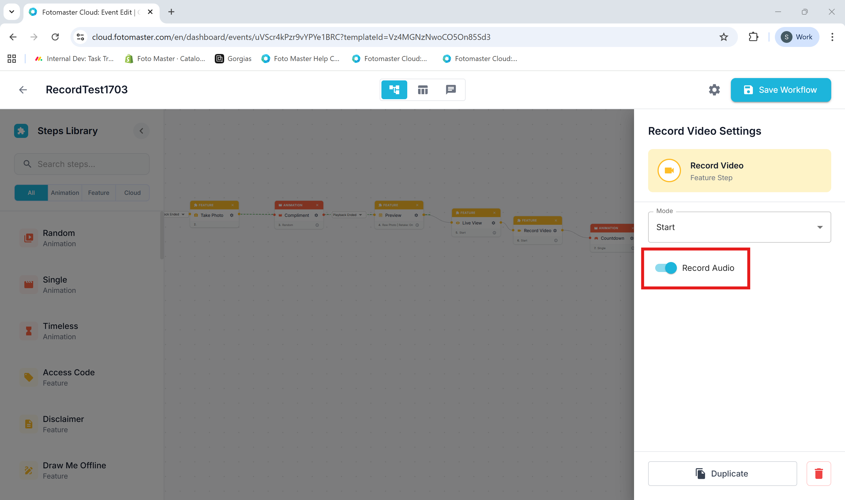 Ensure the Record Audio toggle is switched ON.